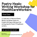In celebration of National Poetry Month, the Stokes Center for Creative Writing is offering a free writing class for Covid-19 healthcare workers. This interactive writing class will offer prompts, poems, and writing time during the afternoon session. This workshop is intended to inspire healing through poetry. The class is over Zoom on Saturday, April 24 from 2:00-3:30 CST. Registration is limited. |