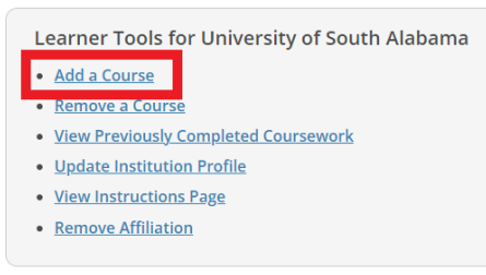 You must affiliate with USA during this step. Type “University of South Alabama” into the provided search bar and select our institution: