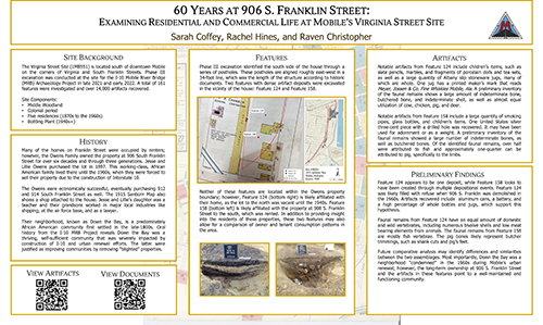 Current research from the I-10 Mobile River Bridge Archaeology Project was presented at the 2022 Southeastern Archaeological Conference in Little Rock, Arkansas. Project personnel presented 15 posters in the symposium: “What's the Most Interesting Thing You've Found?: The I-10 Mobile River Bridge Archaeological Project." Check out the posters below to learn more about the project.